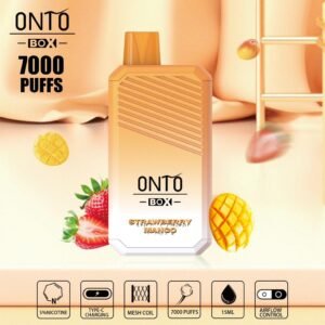 ONTO BOX 7000 PUFFS DISPOSABLE ALL FLAVOUR Feature:Airflow control Battery:650 mAh Type-C rechargeable Nicotine Salt : 5% Eliquid Capacity: 15ml Coil : mesh coil 1.0ohm Type -c Charging Puffs: About 7000 puffs ONTO BOX 7000 PUFFS DISPOSABLE ALL FLAVOUR  Specifications: Puffs: Approximate 7000 puffs , E-juice Capacity: 15ml , Nicotine Strength: 5% , Coil: 1 ohm Mesh Coil , Rechargeable Battery: TYPE-C Size: 40*22*87mm , Net Weight: 45g , Material: PC+ALU ,  BLUEBERRY ICE CHERRY POMEGRANATE COOL MINT DOUBLE APPLE FRUIT KING GRAPE ICE GUAVA BLUE RAZZ LUSH ICE MANGO MELON MIXED BERRES PURPLE RAIN RED ENERGY STRAWBERRY BUBBLEGUM STRAWBERRY KIWI STRAWBERRY MANGO WATERMELON BUBBE GUM Feature:Airflow control Battery:650 mAh Type-C rechargeable Nicotine Salt : 5% Eliquid Capacity: 15ml Coil : mesh coil 1.0ohm Puffs: About 7000 puffs